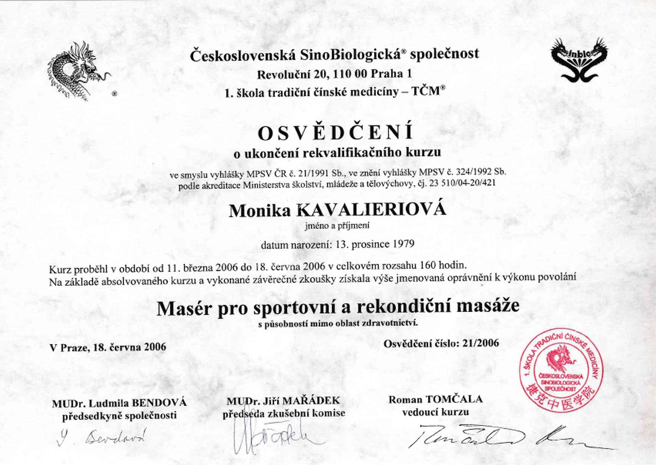 Kurz, díky kterému vám můžu pomoci zvládat a ošetřit krizové a vysoce stresové situace. - Masérský kurz mimo oblast zdravotnictví(2006)