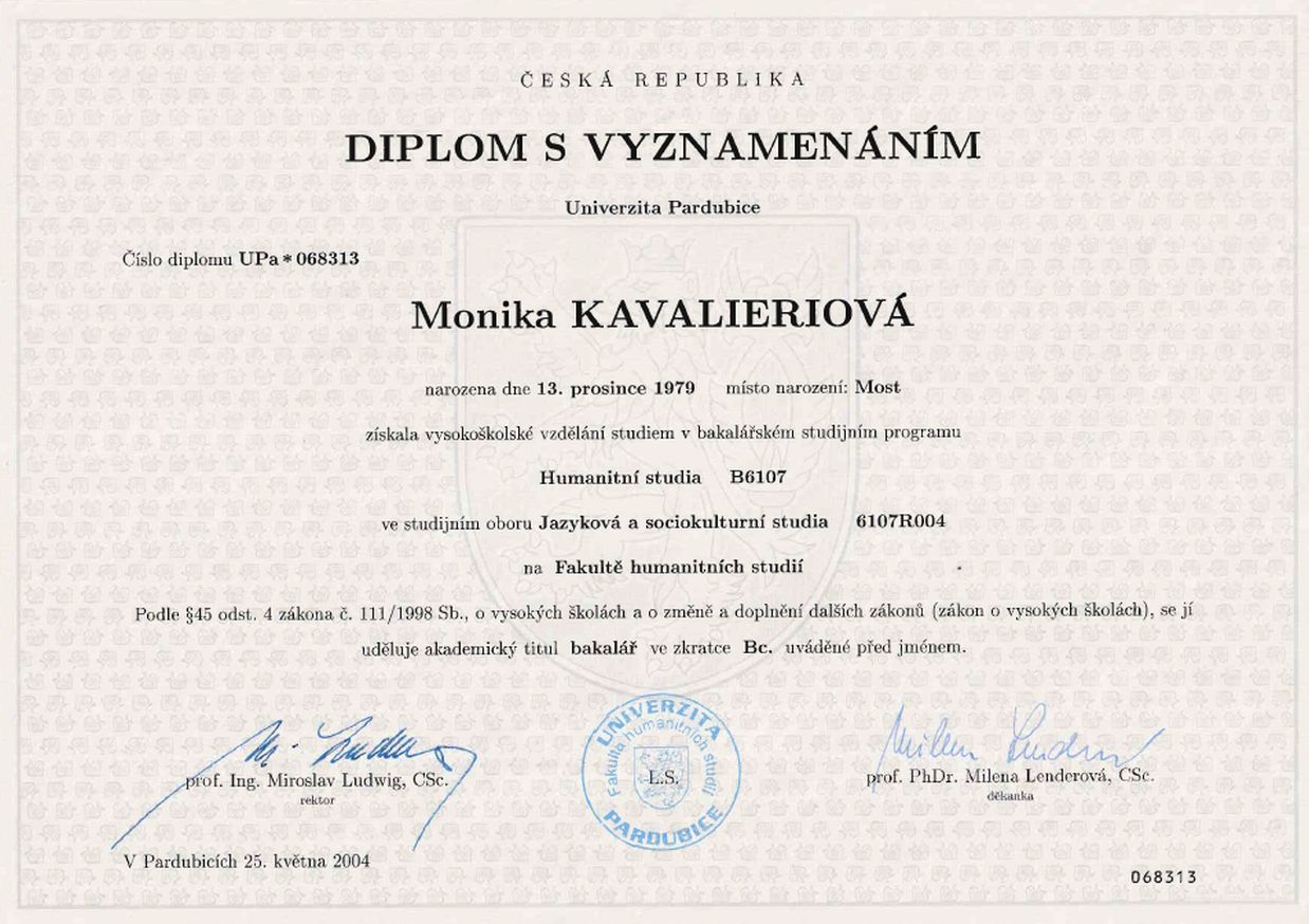 - Univerzita Pardubice - obor: Jazyková a sociokulturní studia(2000 - 2004)